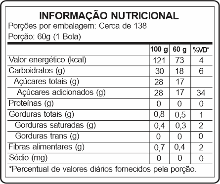 Ingredientes: água, açúcar, polpa de açaí, dextrose, saborizante de jabuticaba (açúcar,