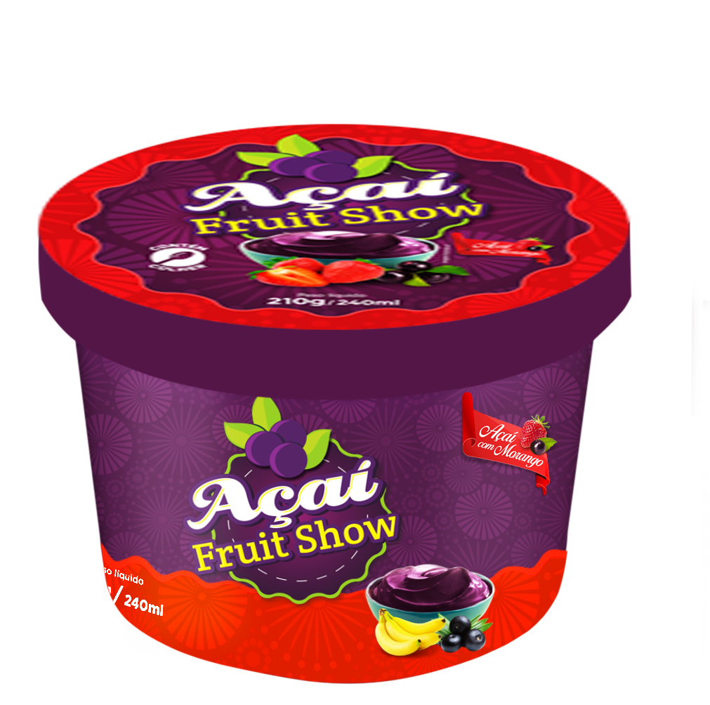 Ingredientes: Água, polpa de açaí, morango, açúcar, dextrose, emulsificantes