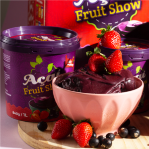Ingredientes: Água, polpa de açaí, açúcar, morango, xarope de glucose, saborizante de iogurte (açúcar, iogurte em pó, maltodextrina, aromatizantes, acidulante ácido cítrico, citrato de sódio e dióxido de silício), gordura