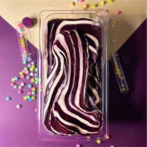de palma, emulsificantes (monoglicerídeos de ácidos graxos destilados, sal de ácidos graxos, monoestearato de sorbitana e polioxietileno de monoestearato de sorbitana), estabilizante (goma guar, carboximetilcelulose e goma tara), ácido cítrico, aroma e corantes (verme