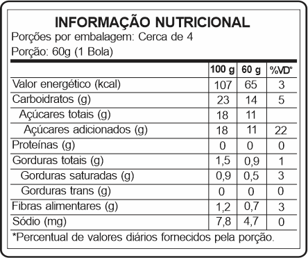 (açúcar, iogurte em pó, maltodextrina, aromatizantes, acidulante ácido cítrico, citrato de sódio e dióxido de silício), gordura de palma, emulsificantes (monoglicerídeos de ácidos graxos destilados, monoestearato de sorbitana e polioxietileno de monoestearato de sorbitana), estabilizante (goma guar, carboximetilcelulose e goma tara), ácido cítrico, aroma e corantes (vermelho bordeaux, amarelo tartrazina, amarelo crepúsculo e azul brilhante).