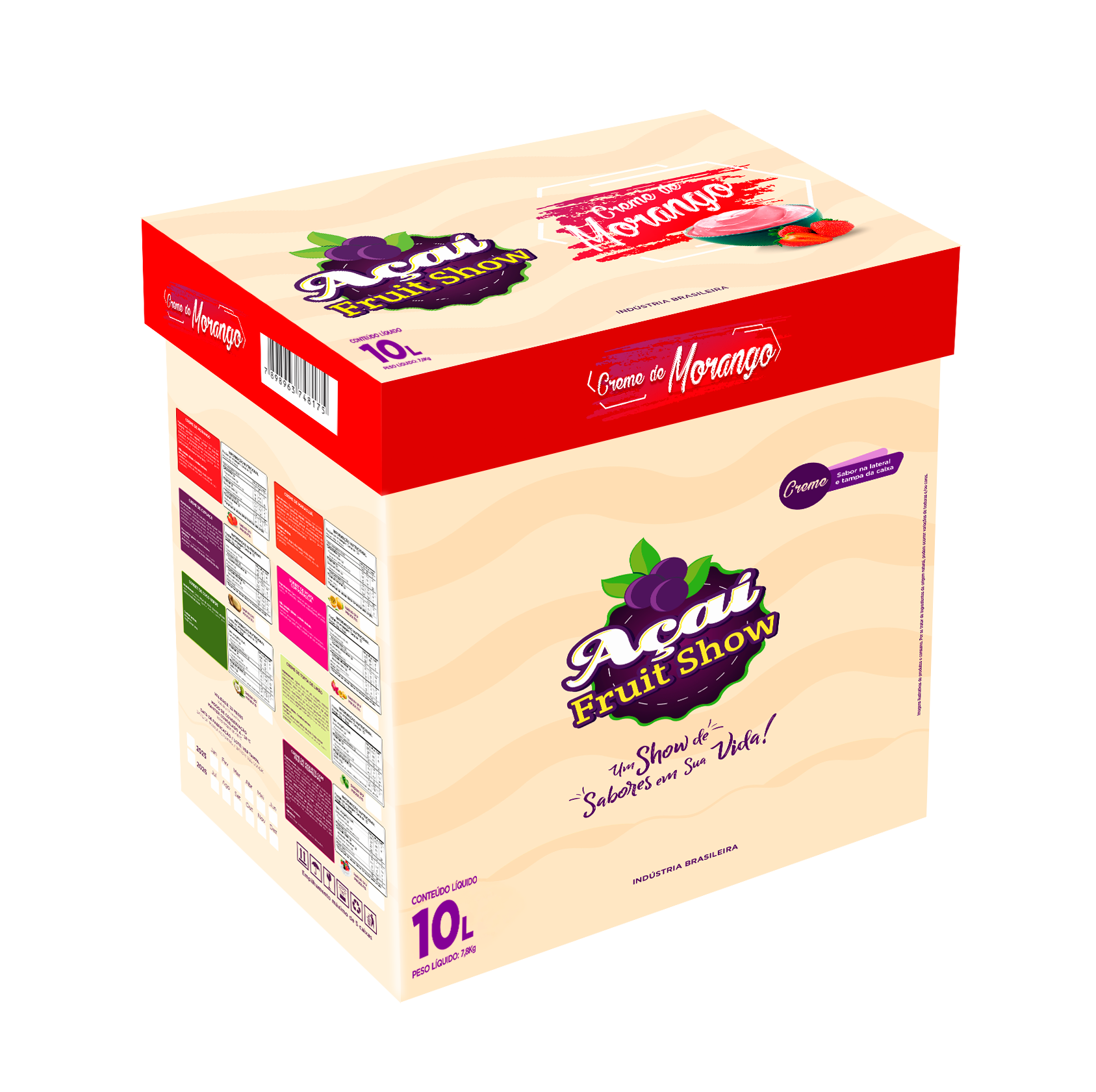 Ingredientes: Água, morango, açúcar, leite em pó integral, gordura vegetal, xarope de glucose, emulsificantes (monoglicerídeos de ácidos graxos destilados, sal de ácidos graxos, monoestearato de sorbitana e polioxietlieno de monoestearato de sorbitana) e estabilizante (goma guar, carboximetilcelulose e goma tara).